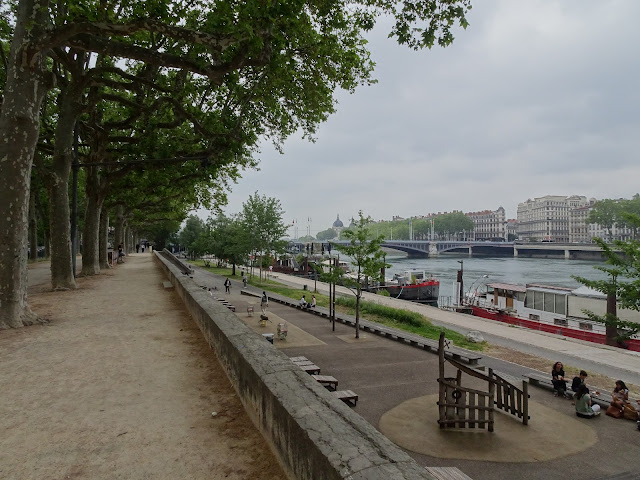 The view from our hotel room in Condrieu. The Rhone is a major shipping line for tourists and freight.