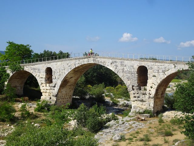 When in France one finds roman structures: Kirsten riding over Pont Julien.